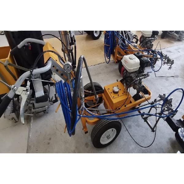 Using gasoline engine to drive hydraulic plunger pump to form high pressure paint in the pump. The pressurized paint is transported to the airless gun through high pressure hose. Finally, the hydraulic pressure is released at the airless nozzle. After instantaneous atomization, the paint is sprayed to the ground to form a marking film layer. Normal temperature marking machine is usually suitable for the construction of underground parking spaces, plot plant area marking, a small number of pavement roads and other kinds of temperature marking.